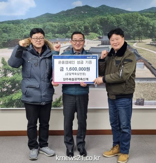 양주시 광적면(면장 권순용)은 지난 31일 ‘양주축협 광적축산계(계장 이종락)’에서 관내 어려운 취약계층을 돕기 위해 써달라며 성금 160만원을 전달했다고 밝혔다.