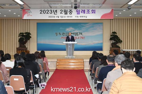 동두천시(시장 박형덕)는 지난 1일, 시청 대회의실에서 2월 중 직원 월례조회를 개최했다.