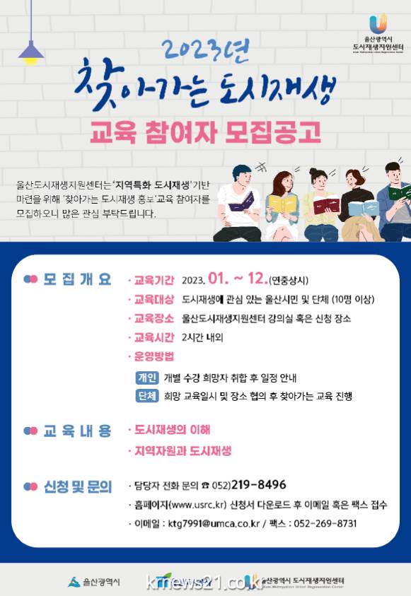▲ 사진=울산광역시울산시는 울산도시재생지원센터(센터장 이창업)가 지역특화 도시재생 기반 마련을 위해 ‘2023년 찾아가는 도시재생 교육 참여자’를 연중 상시 모집한다고 밝혔다.