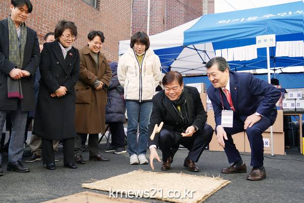 ▲ 사진=이필형 동대문구청장이 1일 오전 회기동 정월대보름 민속놀이 행사에 참석해 윷을 던지고 있다.동대문구(구청장 이필형)가 정월대보름을 맞이해 주민들과 함께 민속놀이 행사를 개최한다.