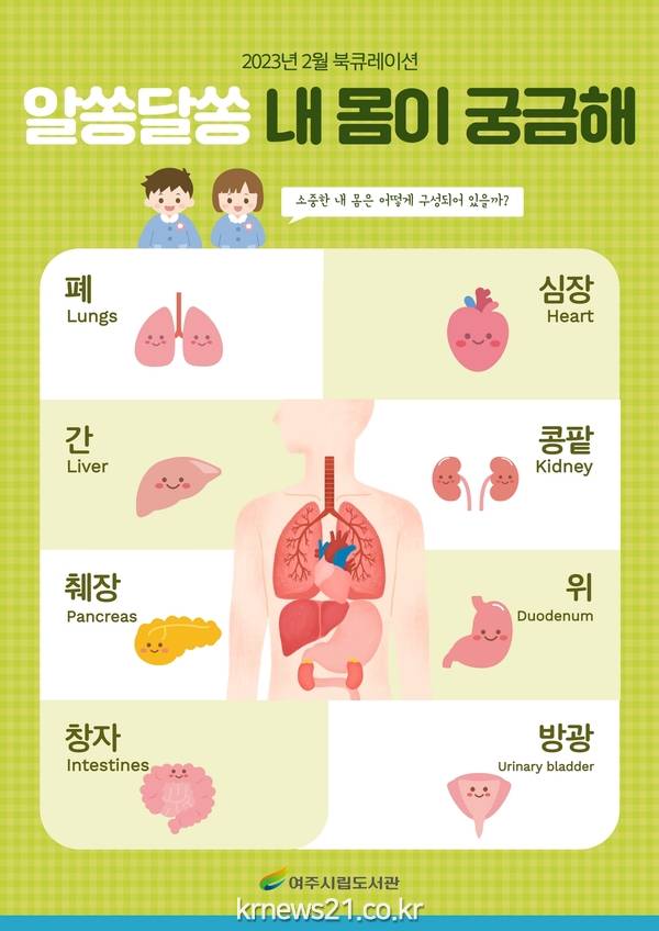 이번 2월에는 「알쏭달쏭 내 몸이 궁금해」라는 주제로 소중한 내 몸에 대해 알아보는 인체 관련 어린이도서 북큐레이션을 운영한다. 해당 전시는 관련 도서 전시 및 대출, 인체 자석· 표정 자석 붙이기, 종이 인체모형 만들기 체험으로 구성된다.