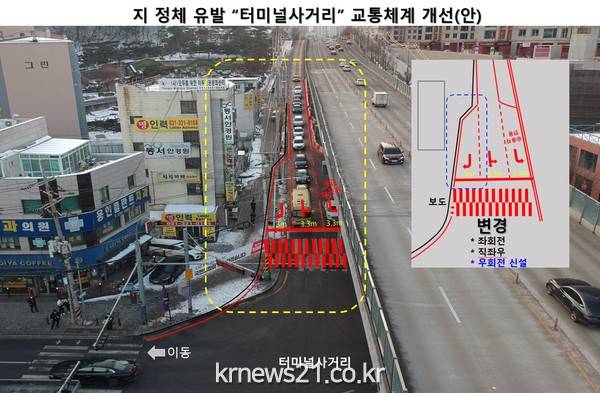 구 관계자는 “교통체계 개선으로 출퇴근 시간대 지·정체 행렬이 줄어들고 터미널사거리의 교통흐름이 원활해질 것으로 기대한다”며 “앞으로도 상습 정체구간이나 사고 위험이 높은 구간을 찾아내 개선하겠다”고 말했다.