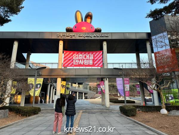 ▲ 사진=강동문화재단강동문화재단(대표이사 심우섭)은 강동아트센터 파사드 옥상에서 전시되는 벌룬아트 ‘검은 귀를 가진 토끼’ 작품을 2월 8일 공개했다.