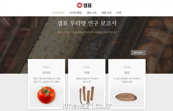 이달 10일에는 웹진 디에디트의 뉴스레터에서도 “정말 놀라운 사이트”라며 샘표 우리맛 연구 보고서를 소개했다. 디에디트는 식재료에 대한 깊은 정보를 보기 쉽게 정리해놨고, 배추를 클릭해서 들어가면 가열·비가열에 따라 맛과 향미가 어떻게 변하는지, 어떤 식재료와 페어링했을 때 고소함과 감칠맛이 증가하는지, 겉잎·중간·속대 등 부위별 맛이 어떻게 다른지 적혀 있다고 설명했다.