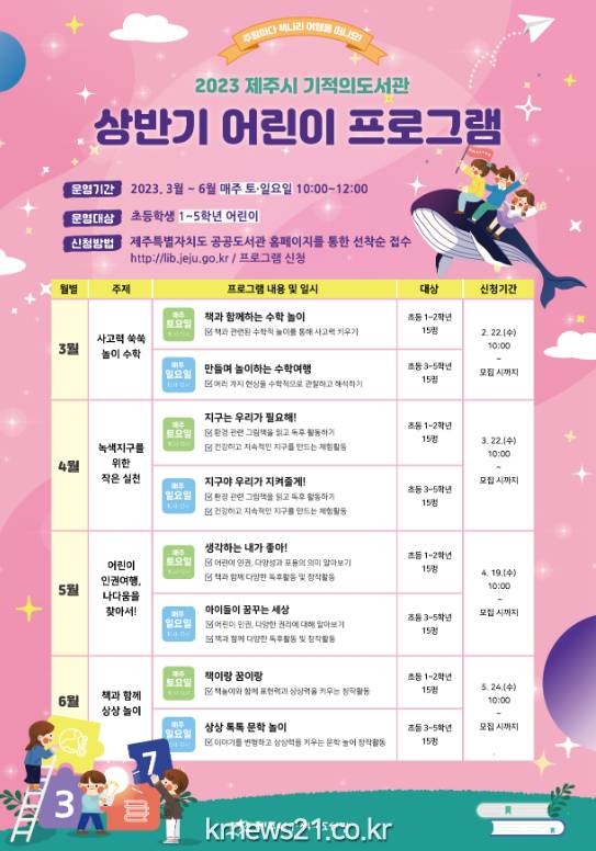▲ 사진=제주시제주시 기적의도서관에서는 도내 초등학생을 대상으로 2023년 상반기 『책나라 어린이 프로그램』을 운영한다고 밝혔다.