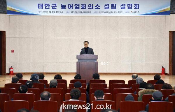 군에 따르면, 태안군 농어업회의소 설립 추진단(단장 가세현)은 지난 21일 군 농업기술센터 창조관에서 가세로 군수 및 군의장, 충남 농어업회의소 회장, 주요 기관·단체 관계자 등 200여 명이 참석한 가운데 ‘태안군 농어업회의소 설립 설명회’를 갖고 농어업회의소의 비전 및 역할을 군민에 알렸다.
