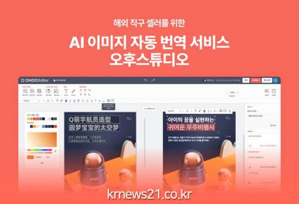 오후스튜디오는 해외 쇼핑몰 사이트나 소셜 미디어(SNS) 등 다양한 채널에서 수집되는 상품 이미지 속 텍스트를 자동으로 인식해 해당 국가 언어로 즉시 번역·편집할 수 있는 서비스다. 2021년 9월 서비스를 출시해 1년 4개월여 동안 1000만장이 넘는 이미지를 번역했고, 현재 6000명 이상의 판매자가 이용하고 있다.