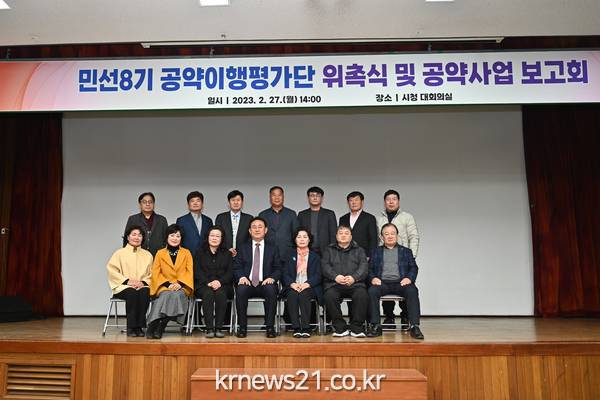 ▲ 민선8기 공약이행평가단 위촉식 및 공약사업 보고회 개최여주시(시장 이충우)는 27일 시청 대회의실에서 민선8기 공약이행평가단 위촉식 및 공약사업 보고회를 개최하였다.
