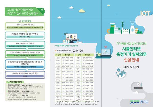 ‘사물인터넷(IoT) 측정기기 부착 의무 안내문’은 지난해 개정된 ‘대기환경보전법’에 따른 것으로, 대기오염물질 배출사업장은 대기배출시설과 방지시설에 사물인터넷 측정기기를 의무적으로 설치해야 한다.