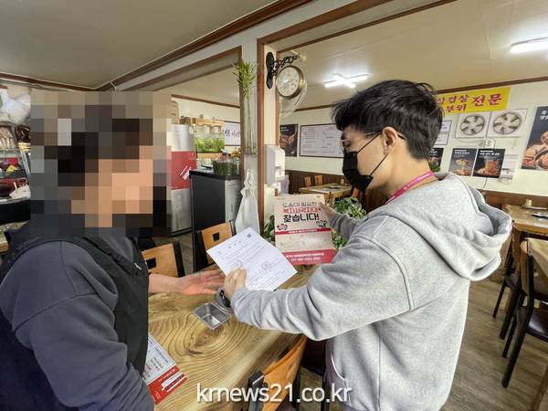 ▲ 동두천시 중앙동, 식당에 출장하여 복지 사각지대 발굴 홍보동두천시 중앙동 행정복지센터는 지난 3일 관내 식당을 대상으로 복지 사각지대 발굴을 위한 홍보 활동을 실시했다고 밝혔다.