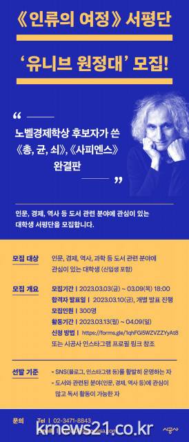 ▲ 사진=시공사‘총,균,쇠’, ‘사피엔스’를 잇는 인류의 미래를 관망하는 도서 ‘인류의 여정’을 출간한 시공사가 300명의 대학생 도서 서평단 ‘유니브 원정대’를 모집한다.