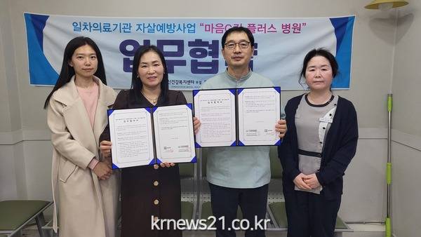 ▲ 동두천시, 자살예방사업 “마음G킴 플러스병원”업무협약 체결동두천시정신건강복지센터 부설자살예방센터는 지난 28일 동두천시 생연동 소재의 임내과의원과 자살 고위험군 발굴 및 연계를 위한 “마음G킴 플러스병원”업무협약을 체결했다고 밝혔다.