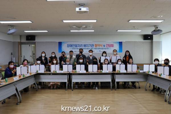 협약에 참가한 기관은 △광양시청소년문화센터 △전라남도교육청 광양도서관 △전남농아인협회 광양시지회 △효정노인복지센터 △햇살단기주거시설 △근로복지공단 광양어린이집 △다솜어린이집 △덕진봄빛어린이집 △사임당어린이집 △신화어린이집 △신화유치원 △왕자와공주꿈동산어린이집 △진아리채어린이집 △중마시장상인회 △성호1차경로당△ 성호3차경로당 총 16개 곳이다. 이들은 앞으로 꾸준히 일자리 참여자 배치 관리, 장애 인식 개선을 위해 적극적으로 협력하기로 합의했다.