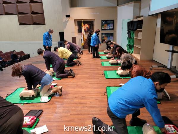 교육내용을 살펴보면 ▲가슴압박 심폐소생술 ▲자동심장충격기(AED) 사용법 ▲최초 발견자의 신속한 심폐소생술 중요성 등 실제 상황에서 도움이 되는 실습 위주로 진행됐다.