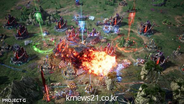이번 프로젝트G 영상은 100% 실제 게임 플레이 화면으로 제작됐다. △언리얼 엔진을 기반으로 구현한 고품질 그래픽 △다양한 개성을 가진 종족과 캐릭터 △근거리, 원거리 유닛을 활용한 전투 방식 △오브젝트 점령과 영토 경쟁 과정에서 활용되는 ‘드래곤’과 ‘전략병기’ △개인 간 전투에서 대규모 집단으로 확장되는 전쟁 장면 등 프로젝트G의 세부 콘텐츠를 확인할 수 있다.
