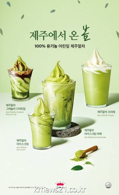 아이스크림은 상하농원의 원유에 말차를 넣은 ‘제주말차 아이스크림’과 말차 아이스크림 위에 초콜릿 소스와 피스타치오 소스 그리고 그래놀라를 올려 디저트처럼 즐길 수 있는 ‘제주말차 그래놀라 디저트컵’이다. 제주 말차를 활용한 음료는 ‘제주말차 아이스크림 라떼’와 ‘제주말차 프라페’가 출시된다. 뿐만 아니라 지난해 가을 출시돼 큰 호평을 받았던 알로에 레몬머틀티도 리뉴얼 출시된다. 진한 레몬향을 가진 레몬머틀티에 달콤하고 말랑한 알로에 과육이 풍성해진 것이 특징이다.