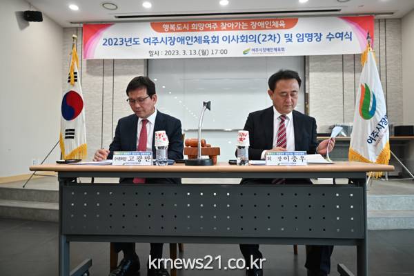 ▲ 여주시장애인체육회, 2023년도 제2차 이사회의 개최여주시장애인체육회(회장 이충우)는 지난 13일 여주축협 하나로마트 2층 회의실에서 고광만 수석부회장 등 임원 50여 명이 참석한 가운에 2023년도 제2차 이사회의를 가졌다.