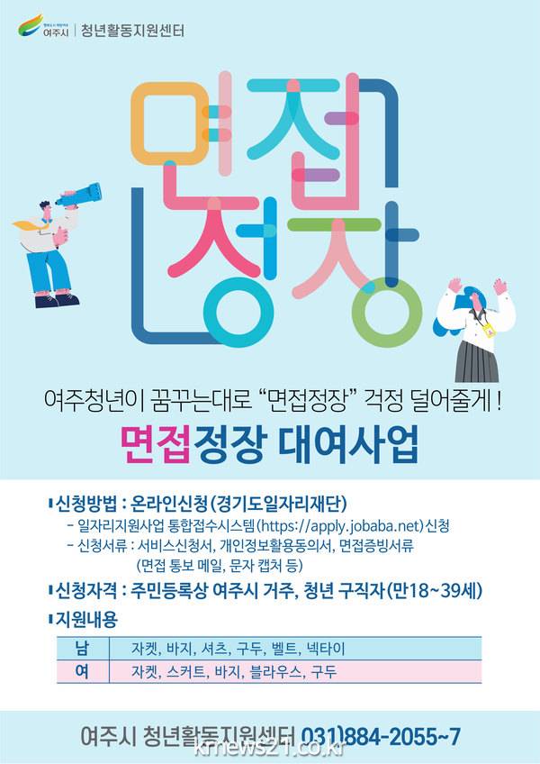 ▲ 여주시, 청년 구직자를 위한 면접정장 대여사업 진행여주시 청년활동지원센터는 2023년에도 청년 구직자들의 면접을 돕기 위해 면접정장 대여사업을 진행한다고 밝혔다.