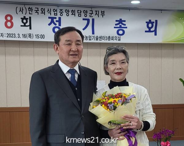 ▲ 사진=아이디어플랫폼담양 옥담은 이병노 담양군수가 3월 16일 담양농업기술센터에서 열린 한국외식업중앙회 전라남도지회 담양군지부 정기총회에서 남도 좋은식단 실천 및 명품음식, 관광도시 발전에 기여한 공을 치하하기 위해 김옥자 옥담 회장에게 감사패를 수여했다고 밝혔다.