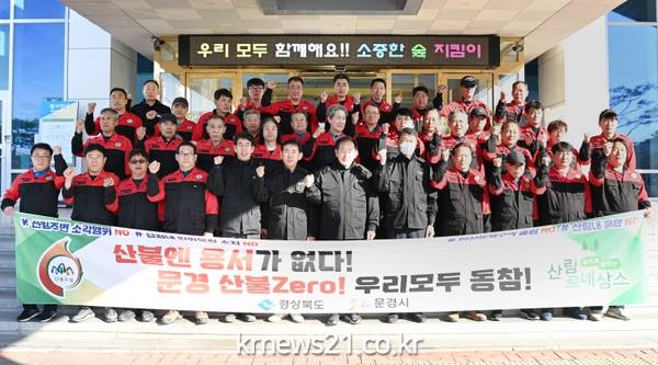 ▲ 사진=문경시청신현국 문경시장은 15일 산불전문예방진화대원 등 40여명과 함께 ‘산불예방 캠페인 현장릴레이 챌린지’에 참여했다.