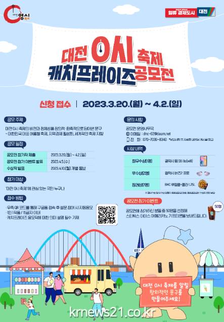 선정된 작품은 포스터·현수막 등 다양한 축제 홍보물에 활용될 예정이며, 공모와 관련된 자세한 사항은 시 홈페이지나 관광진흥과(☎042-270-3978)로 문의하면 된다.