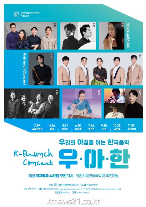 3월부터 11월까지(8월은 제외) 총 8회 펼쳐지는 2023년 “K-브런치콘서트 우·아·한”은 장르의 폭을 확대하여 전통음악의 틀 안에 갇혀있지 않고, 클래식, 재즈 등 다양한 장르와의 융합 및 소통을 주제로 한 프로그램으로 구성했다.
