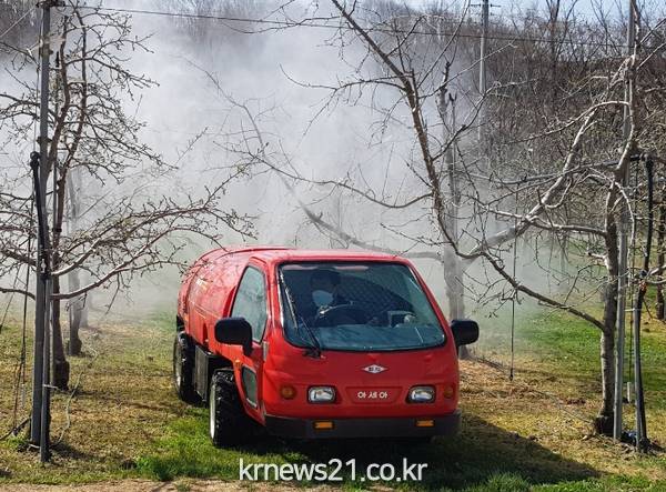 ▲ 사진=문경시청문경시농업기술센터(소장 이경호)는 3월 20일부터 사과·배 농가(2,484호)에 예산(국비·도비·시비)을 투입하여 화상병 방제 약제 4종을 무상으로 공급하고 있다.