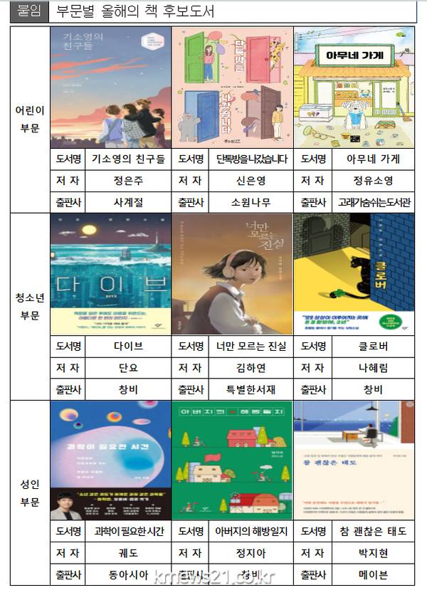최종 도서는 4월 중 시민 선호도 조사 결과를 토대로 올해의 책 시민추진위원회 심의를 거쳐 결정된다.