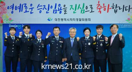 강영욱 자치경찰위원장은 "승진을 축하드리며 더욱 더 안전하고 시민이 행복한 대전을 만드는데 최선을 다해 줄 것을 당부드린다”고 말했다.
