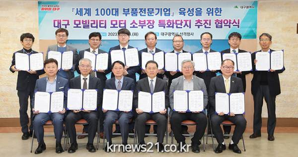 ▲ 사진=대구대구광역시(시장 홍준표)는 4월 4일(화) 대구광역시 산격청사에서 모빌리티 모터 소재부품장비 특화단지 유치 및 모터산업 육성을 위해 지역 유관기관들과 상호협력 협약을 체결했다.
