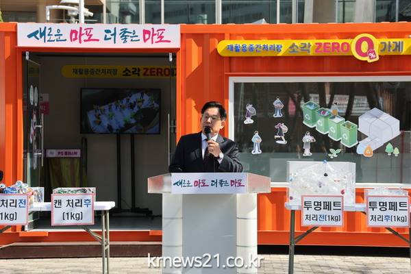 ▲ 사진=오는 17일부터 28일까지 폐건전지 교환 행사가 진행될 마포구청 광장의 소각 제로가게. 마포구는 주민 누구나 생활쓰레기를 분리배출 및 중간처리 할 수 있도록 구청 광장에 ‘소각 제로가게’ 1호점을 열고 설명회를 개최한 바 있다.마포구(구청장 박강수)가 22일 지구의 날을 맞아 다 쓴 건전지를 새 건전지로 교환해주는 행사를 마련했다.