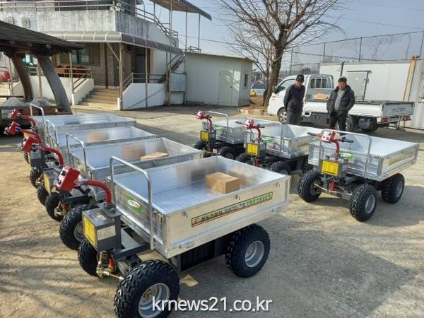 ▲ 여주시, 농촌인구 고령화 대비를 위하여 전동운반차 지원여주시(시장 이충우)에서는 부추재배 농업인들을 대상으로 농작업으로 인한 재해예방과 능률향상을 위해 「시설부추 재배 생력화 환경 조성 시범사업」을 추진하였다고 밝혔다.