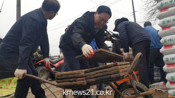 ▲ 강수현 양주시장, 광적면서 못자리 설치 농가 방문 격려강수현 양주시장은 지난 6일 광적면 효촌리 못자리 설치 현장현장을 방문하며 분주하게 작업하고 있는 농업인을 노고를 격려하고 일손을 보탰다.