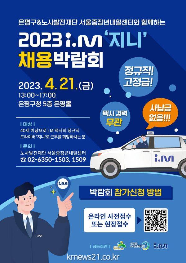 ▲ 은평구, 2023. i.M 지니 드라이버 채용박람회 개최은평구(구청장 김미경)가 오는 21일 ‘2023 i.M 지니 드라이버 채용박람회’를 개최한다고 밝혔다.