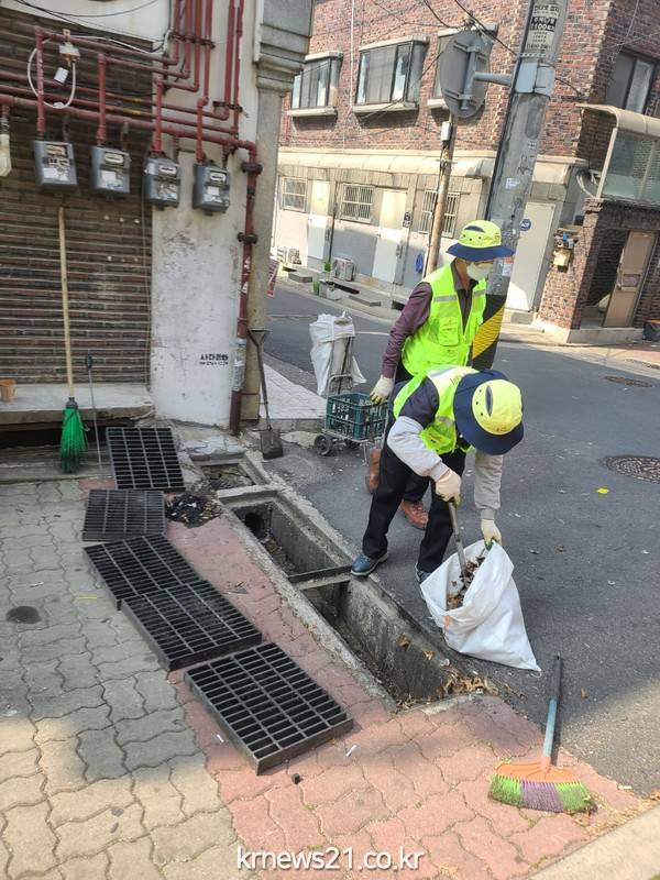 ▲ 사진=작업 중인 동대문구 ‘빗물받이 지킴이’동대문구(구청장 이필형)가 여름철 폭우피해 예방을 위한 ‘빗물받이 지킴이’의 본격적 운영을 알렸다.