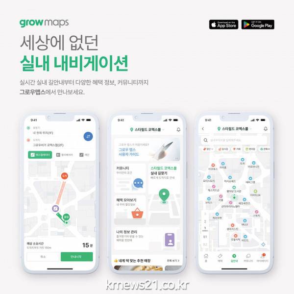 ▲ 사진=프리그로우프리그로우(대표 김영식)가 복잡한 대형 복합 시설 안에서 실시간 길 안내가 가능한 실내 내비게이션 ‘그로우맵스(Grow Maps)’를 정식 출시했다.