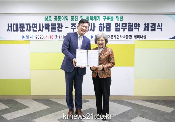 하림은 18일 서대문자연사박물관에서 박준호 하림 육가공부문장과 이남숙 서대문자연사박물관장이 참석한 가운데 용가리 브랜드에 대한 경험을 확대하고자 공룡과 관련된 전시 공동 기획 및 다양한 문화 프로그램 운영에 관한 업무 협약을 맺었다고 밝혔다.