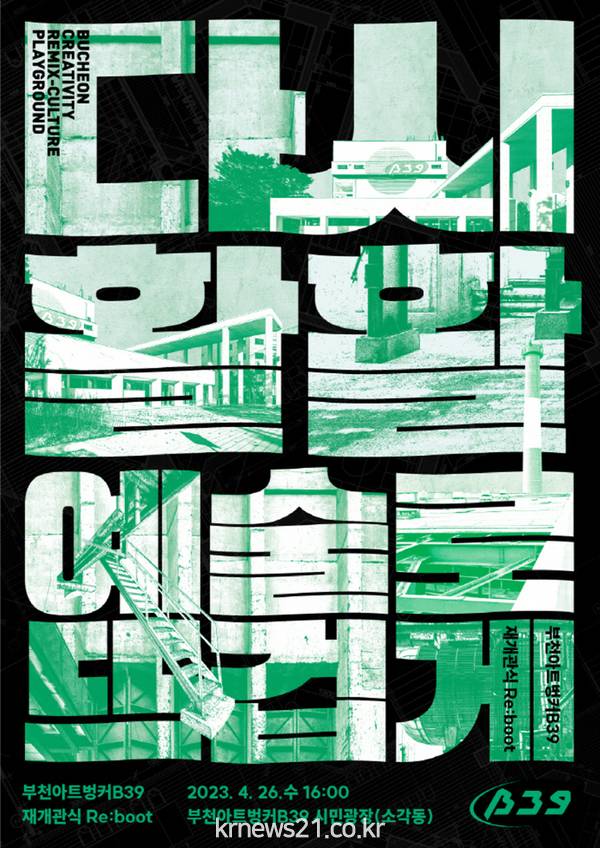 한편, 2018년 5월 개관한 부천아트벙커B39는 옛 삼정동 소각장을 문화재생해 만든 국내 최초 폐소각장 복합문화예술공간이다. 영화 ‘길복순’과 ‘승리호’를 비롯해 세계 유명 브랜드 ‘루이비통’의 BTS 화보 촬영 등 특색있는 촬영 장소로 국내외의 많은 관심을 받고 있다. 오는 하반기에 예술, 기술, 환경을 결합한 주제로 컨퍼런스와 전시, 공연 등을 선보이는 ‘벙커 페스타’ 등을 계획하고 있다. 부천아트벙커B39는 매주 월요일 휴관이며, 오전 10시부터 오후 5시까지 운영된다.