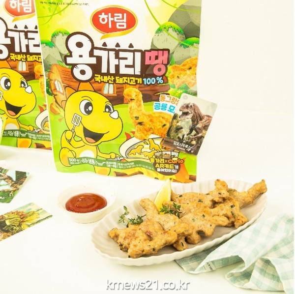 ▲ 사진=하림종합식품기업 하림이 공룡 모양 동그랑땡 ‘용가리 땡’을 출시하며 ‘용가리’ 브랜드 라인업을 확장했다. 증강현실(AR) 공룡 카드까지 특별 제작하며 키즈 반찬 브랜드로의 도약에 본격적으로 나섰다.