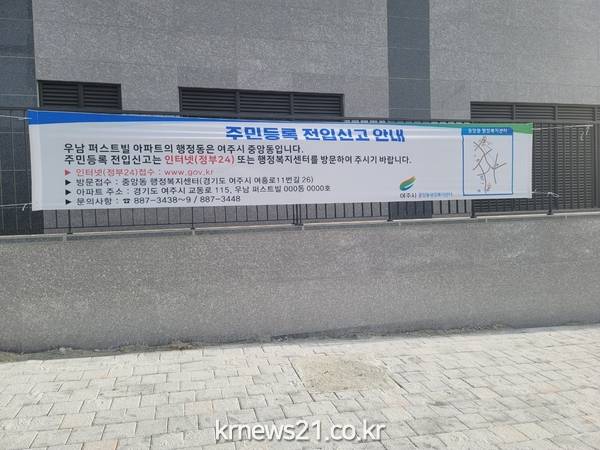 중앙동 소재 신축아파트 1947세대가 입주함에 따라 주민 편의를 위해 아파트 입구에 현수막을 설치하고 안내 전단지를 관리사무소에 사전 배포하는 등 입주민들에게 필요한 정보를 쉽게 알 수 있도록 준비하였다.