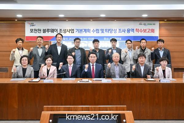 포천시는 지난 19일 백영현 포천시장, 서과석 포천시의회의장을 비롯한 기관·단체장 등 관계자 20여 명이 참석한 가운데 ‘포천천 블루웨이 조성사업 기본계획 수립 및 타당성 조사 용역 착수보고회’를 개최했다.