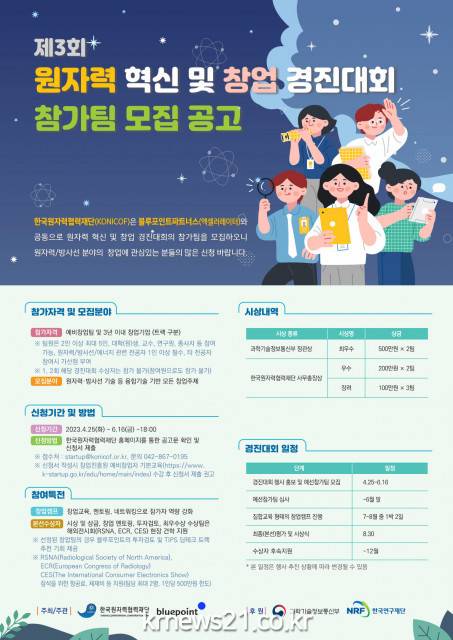 ▲ 사진=한국원자력협력재단한국원자력협력재단(사무총장 신준호, 이하 재단)은 과학기술정보통신부와 한국연구재단의 후원으로 ‘제3회 원자력 혁신 및 창업 경진대회’를 개최한다고 밝혔다.