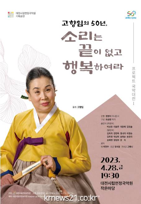 첫 번째 프로젝트 국악대전은 올해로 판소리가‘유네스코 인류무형문화유산 등재 20주년’을 기념하여 대전시 무형문화재 제22호 판소리 춘향가 보유자 윤초 고향임을 초청하여 고향임의 50년 소리 인생을 토크 콘서트 형식으로 선보인다.