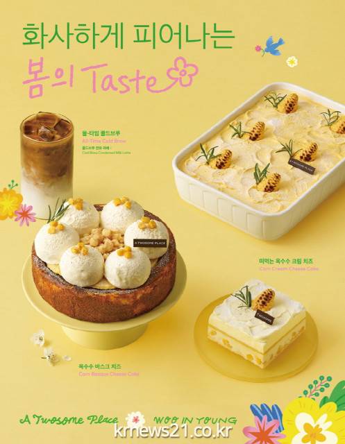 이번 신제품은 막 피어나는 꽃처럼 생동감 넘치는 봄의 기운을 투썸플레이스만의 감성으로 재해석해 ‘화사하게 피어나는 봄의 맛(Taste)’을 테마로 한 봄 시즌의 두 번째 라인업이다. 달콤하고 고소한 옥수수의 풍부한 맛과 따뜻한 봄날을 떠올리게 하는 색감의 비주얼이 특징이다.