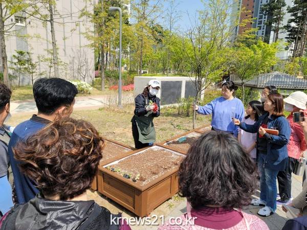 이번 일일교실에는 덕정동 청담마을 4단지 등 5개소 아파트 주민 90여명이 참여해 상자텃밭에 쑥갓, 깻잎, 상추 등 6가지 봄 작물을 함께 심으며‘양주시 텃밭농부’로서의 첫 활동을 시작했다.