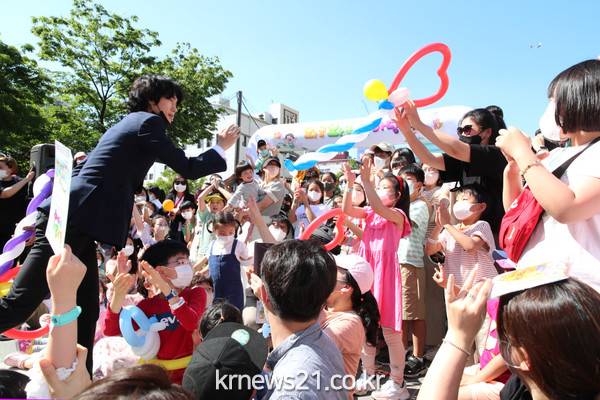 ▲ 사진=어린이날 와글와글 대축제에서 마술공연을 즐기며 밝게 웃는 아이들서울 성동구(구청장 정원오)가 오는 5월 5일 오후 1시부터 왕십리광장에서 제101회 어린이날을 맞아 성동 온마을 대축제 ‘와글와글’을 개최한다.