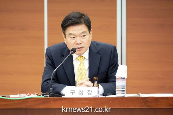 ▲ 사진=4월 10일 종합발전계획수립 용역 착수보고회에 참석한 이필형 동대문구청장이 참석자들과 의견을 나누고 있다.동대문구(구청장 이필형)가 장안동을 친수문화 도시공간 등으로 만들기 위해 ‘장안동 일대 종합발전계획수립 용역’을 추진한다.