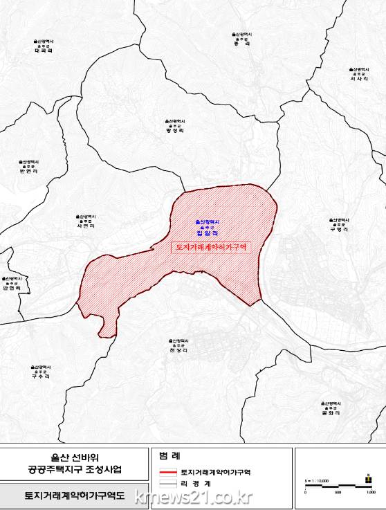 이에 울산시는 투기성 토지거래를 사전 차단하고 부동산 시장 안정을 위해 당초 지정구역에 대해 「부동산 거래신고 등에 관한 법률」 제10조 규정에 따라 1년간 토지거래허가구역으로 재지정하게 됐다.