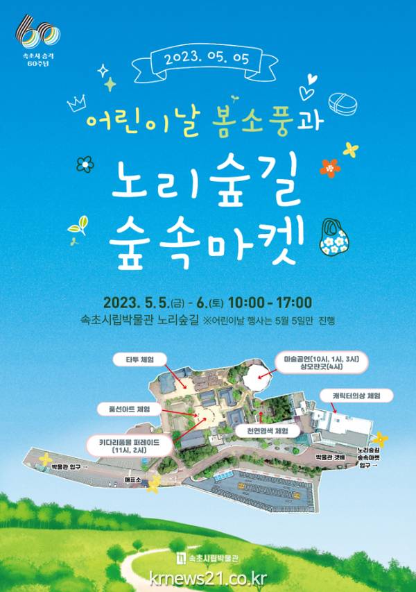 ▲ 사진=속초시속초시립박물관은 5월 가정의 달을 맞아 ‘5월 어린이날 소풍’과 ‘노리숲길 숲속마켓’을 연계한 행사를 5월 5일과 6일 양일에 걸쳐 개최한다.
