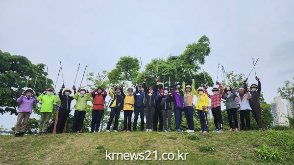 프로그램은 지난 4월 13일부터 5월 4일까지 매주 목요일 총 4회, 인근 뚝섬한강공원에서 진행됐다. 총 30명의 주민이 참여했으며, 주민들은 전문 강사의 지도에 따라 정확한 걷기 자세와 운동법을 배우며 노르딕 워킹을 즐겼다.